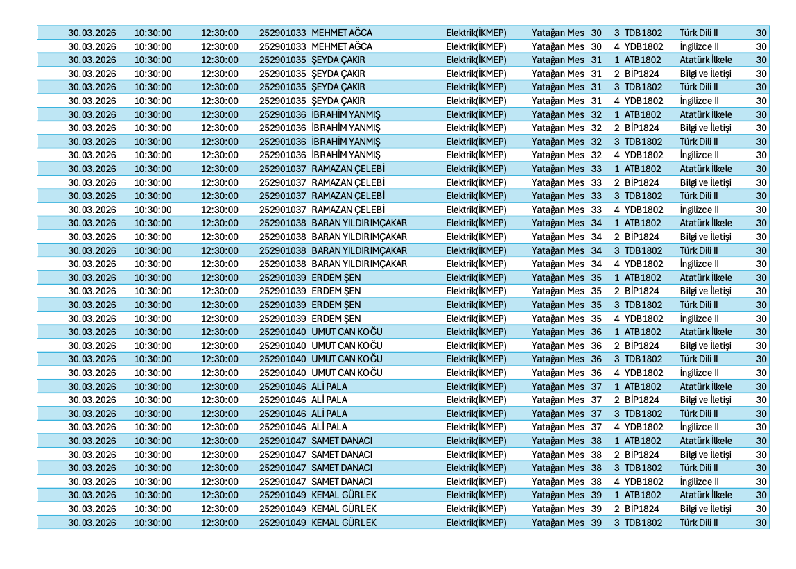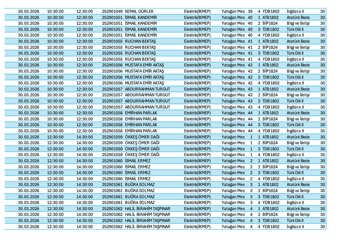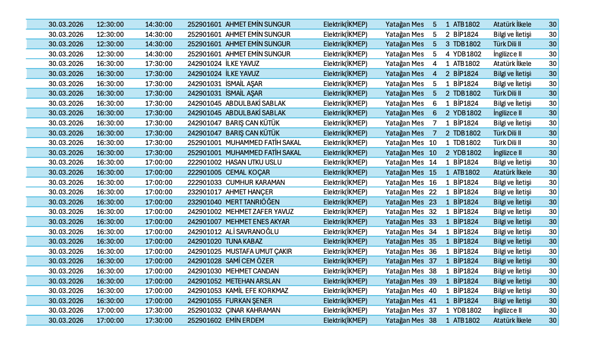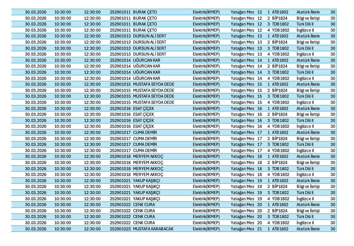 ORTAK ZORUNLU DERSLER İSME GÖRE BAHAR 2026-VİZE SINAV PROGRAMI Son Güncelleme : 25.03.2026 13:32 Okunma Sayısı : 72